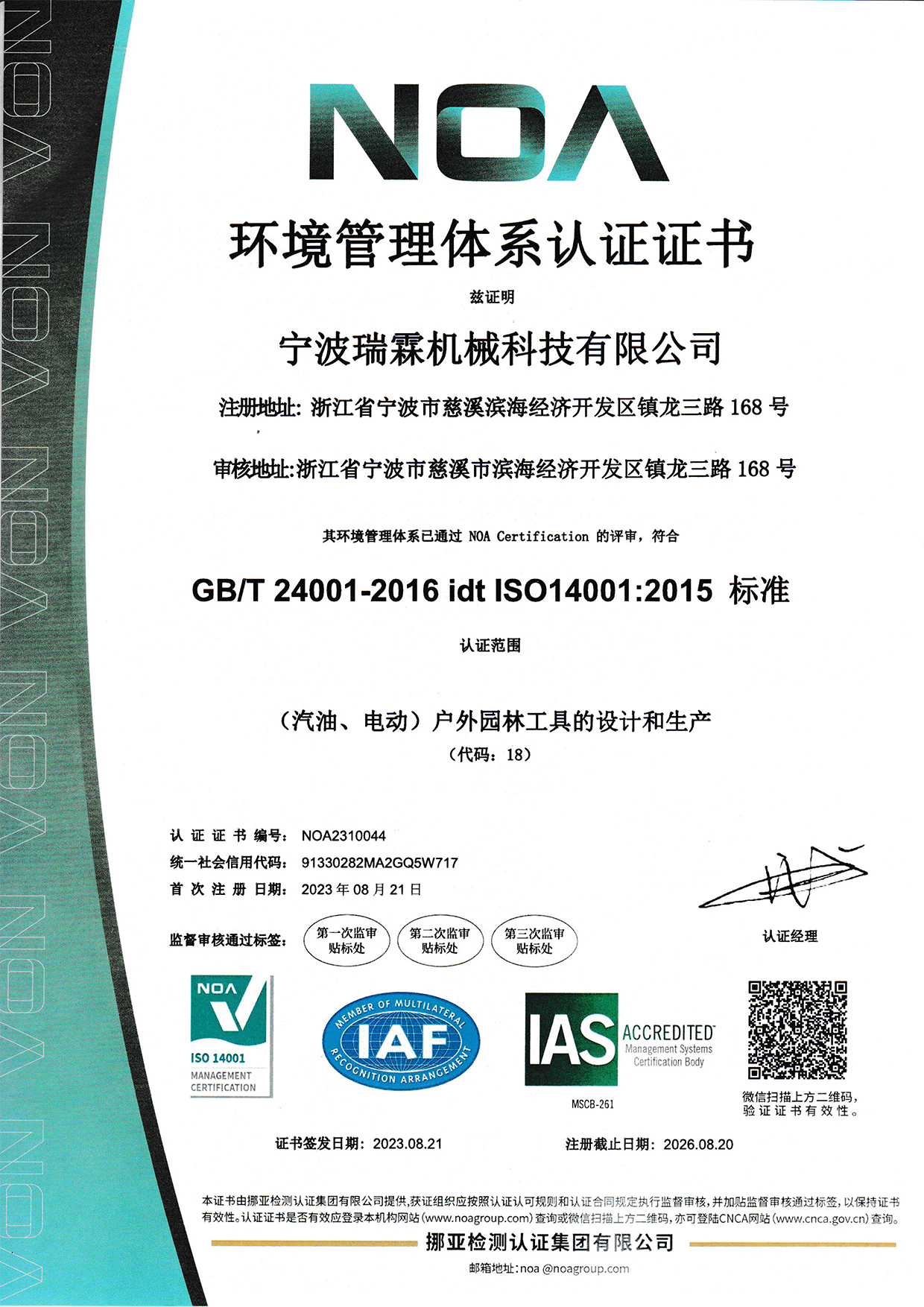 宁波瑞霖机械科技有限公司(简称NGP)是华体网页版的全资子公司,成立于2019年4月,位于浙江省慈溪滨海经济开发区镇龙三路168号,占地面积约50000平方米。公司拥有雄厚的技术力量和先进的生产设备,是行业内规模最大的企业之一。NGP集产品设计、开发、生产、销售和服务于一体,主要从事各类汽油、割草机、修枝机、打草机、链锯、吹风机等园林工具的设计研发和制造,产品远销欧洲、美洲、大洋洲等多个国家和地区,同时内销全国各地。作为国家知识产权优势企业,公司注重产品设计,并在此基础上采用先进的精益生产方式,以7S活动规范现场管理,以量身打造的ERP系统整合及有效利用企业资源,以ISO 9001:2015等标准来完善公司质量管理体系,并通过“GS”、“EMC”、“CE”、“UL”等认证来确保产品的安全性和可靠性,已取得各地区出口许可证和自营进出口权。